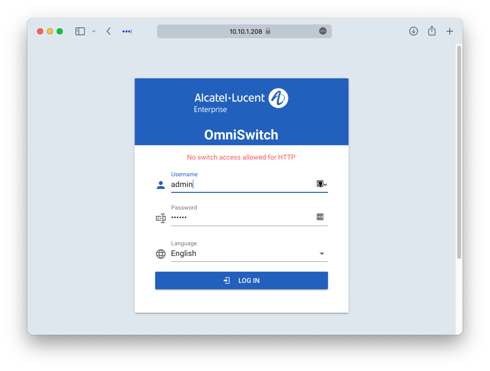 De switches zijn op verschillende manieren te beheren, zoals console, ssh of web. Standaard staan de externe verbindingen uitgeschakeld. Je krijgt dan een melding als hieronder: