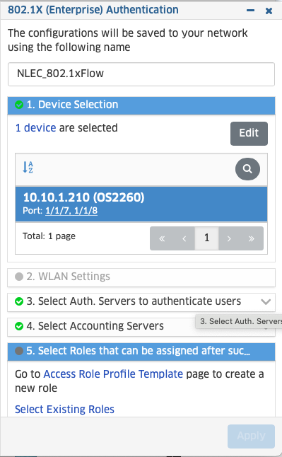 2. Selecteer vervolgens de switch en de poorten die je wilt gebruiken en waar je 802.1x authenticatie op toe wilt passen.