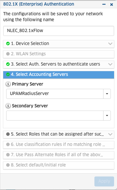 4. Bij nummer 4 dien je de Accounting Servers te selecteren. Indien je hier gebruik wilt maken van de OV Cirrus UPAM service in de cloud, selecteer je UPAMRadiusServer.