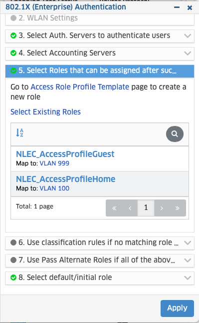 5. In stap 5 kies je de Access Role Profiles en koppel je deze aan de bijbehorende VLAN’s.